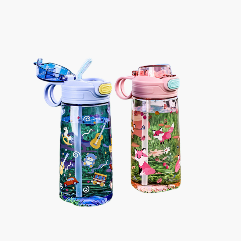 Tragbarer Cartoon-Plastikbecher, leicht und robust, ideal für unterwegs. BPA-frei, auslaufsicher, kindgerechtes Design, einfache Reinigung, vielseitig einsetzbar.